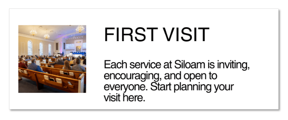 Siloam’s greatest desire is to be ambassadors of Christ who share the gospel consistently, stand on the truth of God’s word steadfastly, and serve others sacrificially.